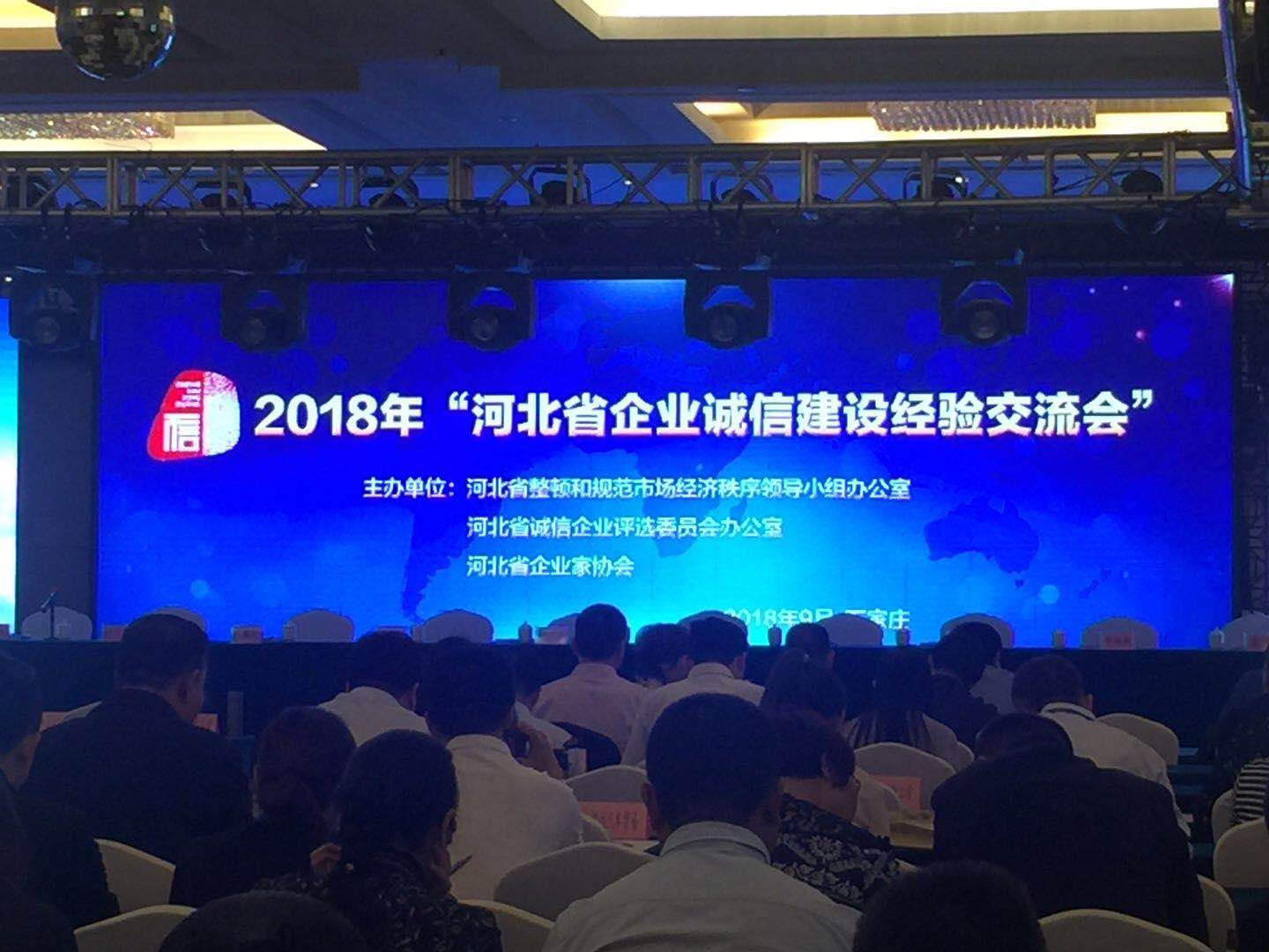 9月27日,由河北省誠信企業評選委員會辦公室和河北省企業家協會會同省有關部門聯合組織開展的“河北省企業誠信建設交流會”暨“河北省誠信企業”授牌儀式在石家莊舉行。